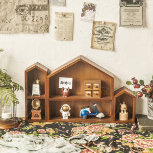 Combo 3 chiếc Kệ hình ngôi nhà Decor trang trí, kệ bánh kệ để bàn gỗ thông sơn màu óc chó vintage