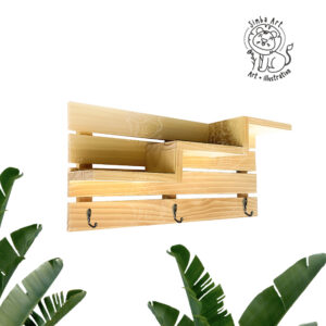Móc Treo Đồ, Móc Treo Quần Áo Gắn Tường Chất Liệu Gỗ Thông kèm kệ decor trang trí